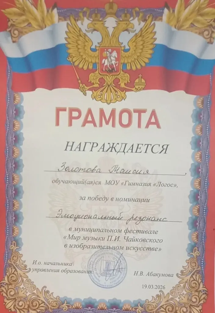 И мы с гордостью сообщаем: ученица 5 класса гимназии «Логос» Золотова Таисия стала ПОБЕДИТЕЛЕМ в номинации «Эмоциональный резонанс»! 🏆🎉