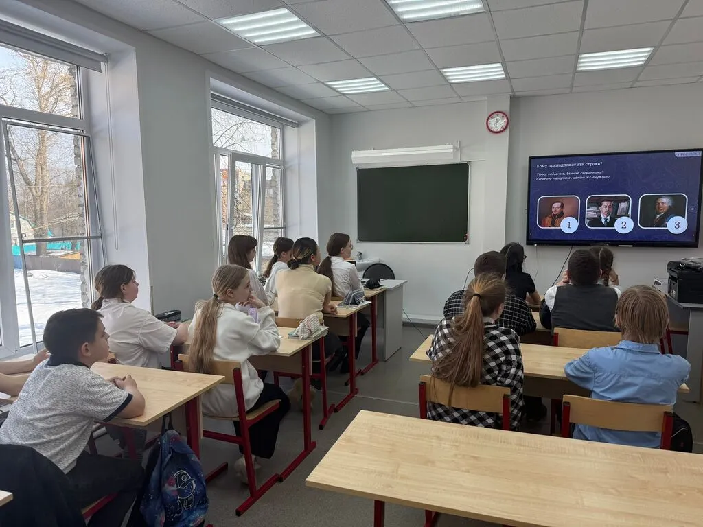 А гимназисты постарше проверили свою эрудицию и знание великой русской поэзии. В увлекательных викторинах ребята угадывали, кому из великих поэтов принадлежат те или иные строки. Пушкин, Лермонтов, Есенин, Ахматова — голоса классиков звучали в стенах гимназии! 🎭📚